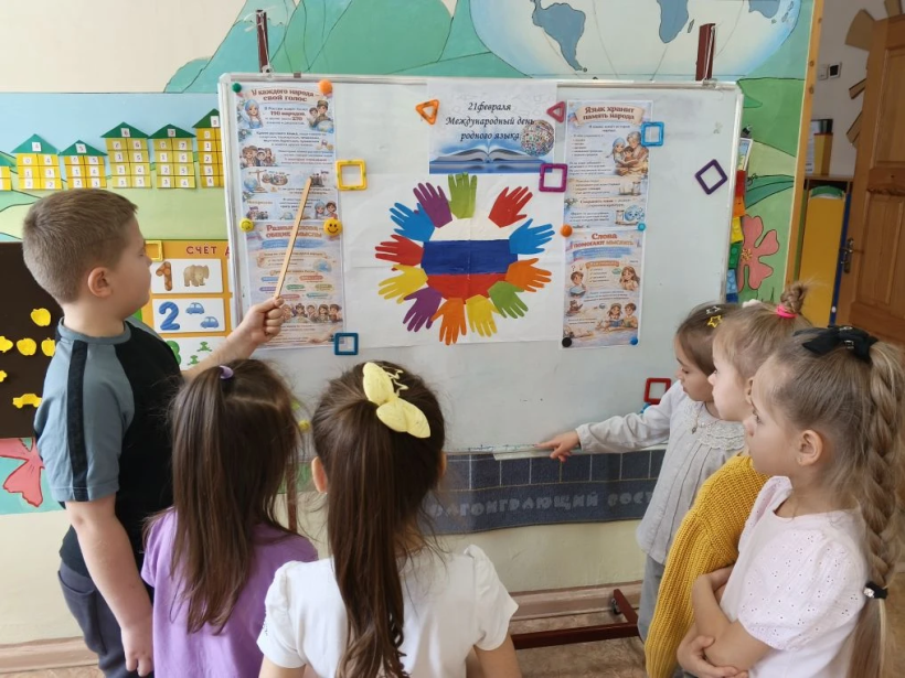 Во 2 подготовительной группе прошло познавательное занятие «Родной язык – наше богатство». Воспитанники познакомились с историей этого праздника, узнали, что в нашей стране существует множество национальностей и у каждого народа есть свой родной язык, но всех нас объединяет русский язык, который помогает людям разных национальностей понимать друг друга и жить в дружбе и согласии.