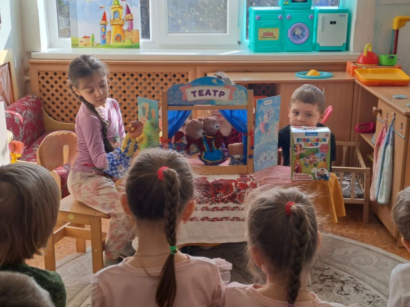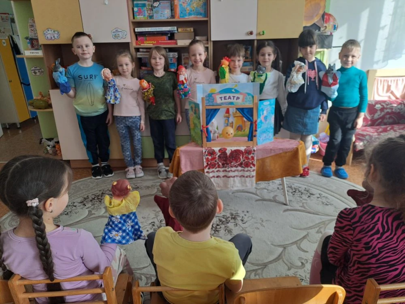 Театр является одной из самых ярких красочных и доступных восприятию дошкольника сфер искусства. Театрализованная деятельность помогает детям раскрепоститься, развивает воображение и фантазию, коммуникативные умения, повышает самооценку, развивает речь, и просто вносит яркие эмоции в повседневную жизнь детей. Дети с удовольствием играли в игры-драматизации по русским народным сказкам с использованием театральных атрибутов, используя разные виды театра.