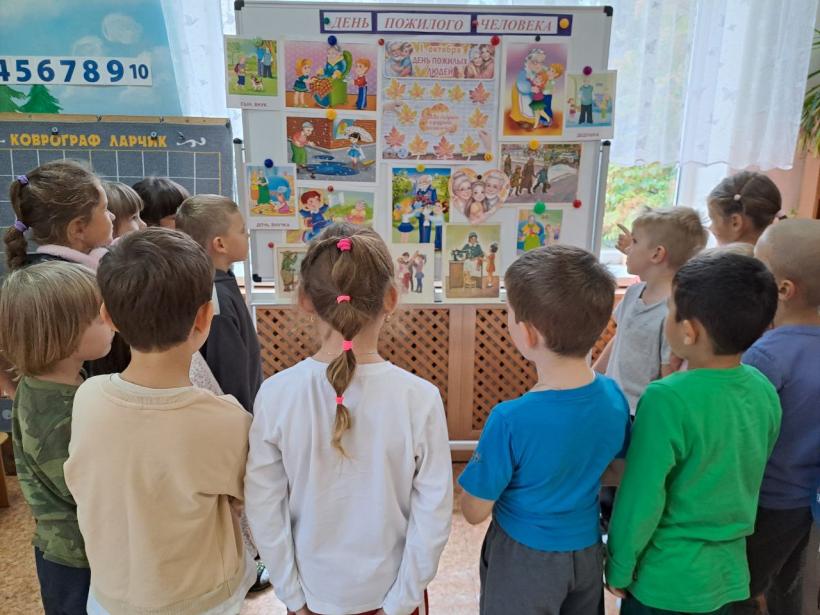 В этот день с ребятами всех возрастных групп проведены тематические беседы «Кто такой пожилой человек», «Как я помогаю своим бабушке и дедушке» и др., чтение и обсуждение художественных произведений, отгадывание загадок.